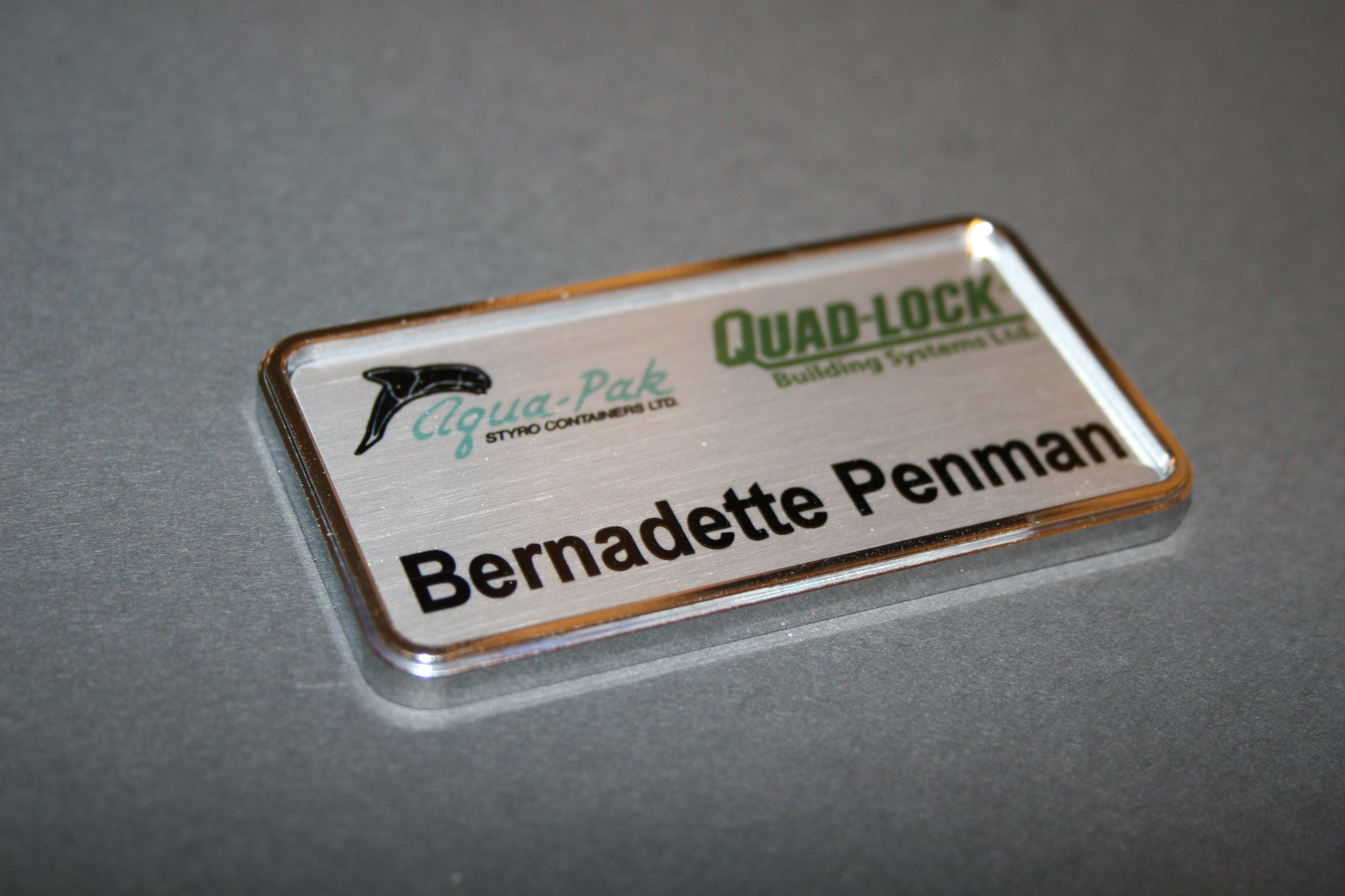 Name Badges or Name Tags are related to work, conferences and networking. They are usually very simple but yet very important for something so small. They can instill confidence and a sense of belonging and can be a great promotional item for your business. Let us know what you think of your name badge on our facebook page. www.facebook.com/KelownaEngravers